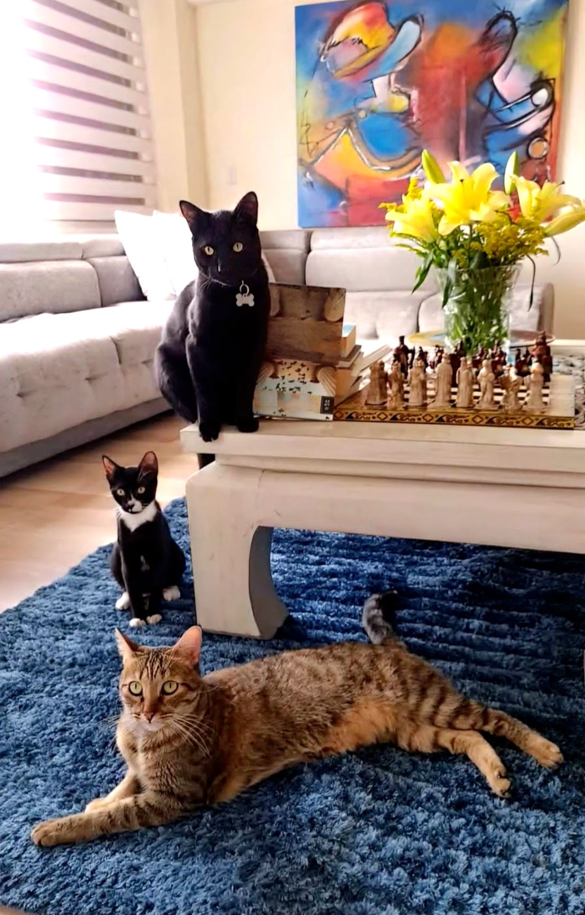 Por último les quise compartir la imagen de mis tres gatos posando, no recuerdo muy bien cómo logré que estuvieran los tres organizados para la foto perfecta, pero allí están. Espero les saquen una sonrisa estas tres bellas bolas de pelos ¡Feliz Año!